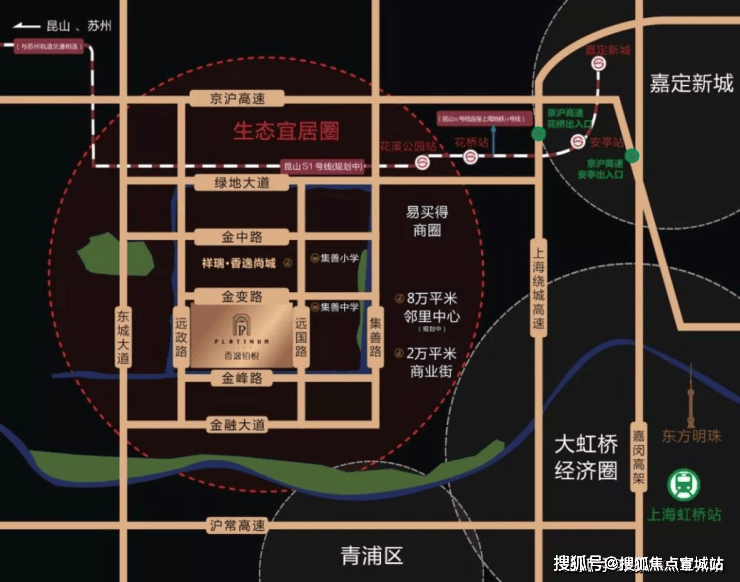 香逸铂悦位于苏州市昆山市花桥镇.项目位于大虹桥生活圈双轨交汇地,轨道交通上海11号线号线无缝链接沪昆苏跨省交通脉络,畅享大时代下的大虹桥都市圈核心地.低密度的宜居环境,高度集合的生活配套,成功为业主营造了一个高效、高便捷、高智能的综合生活区.